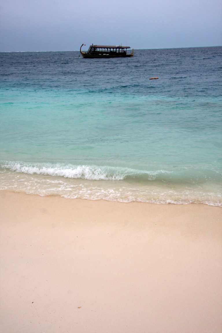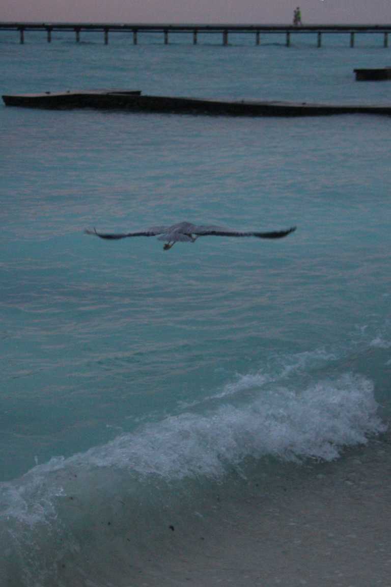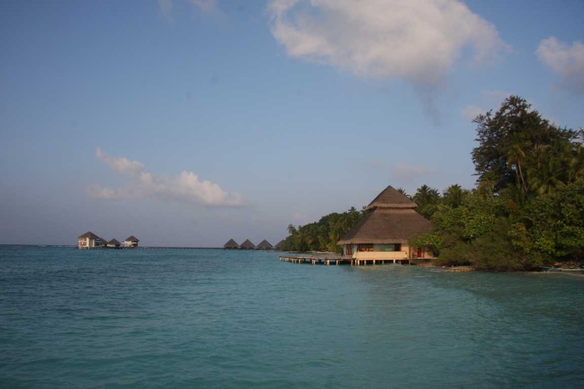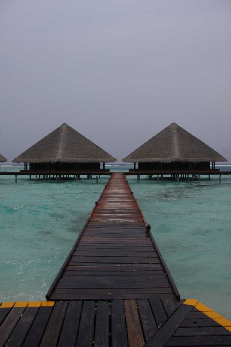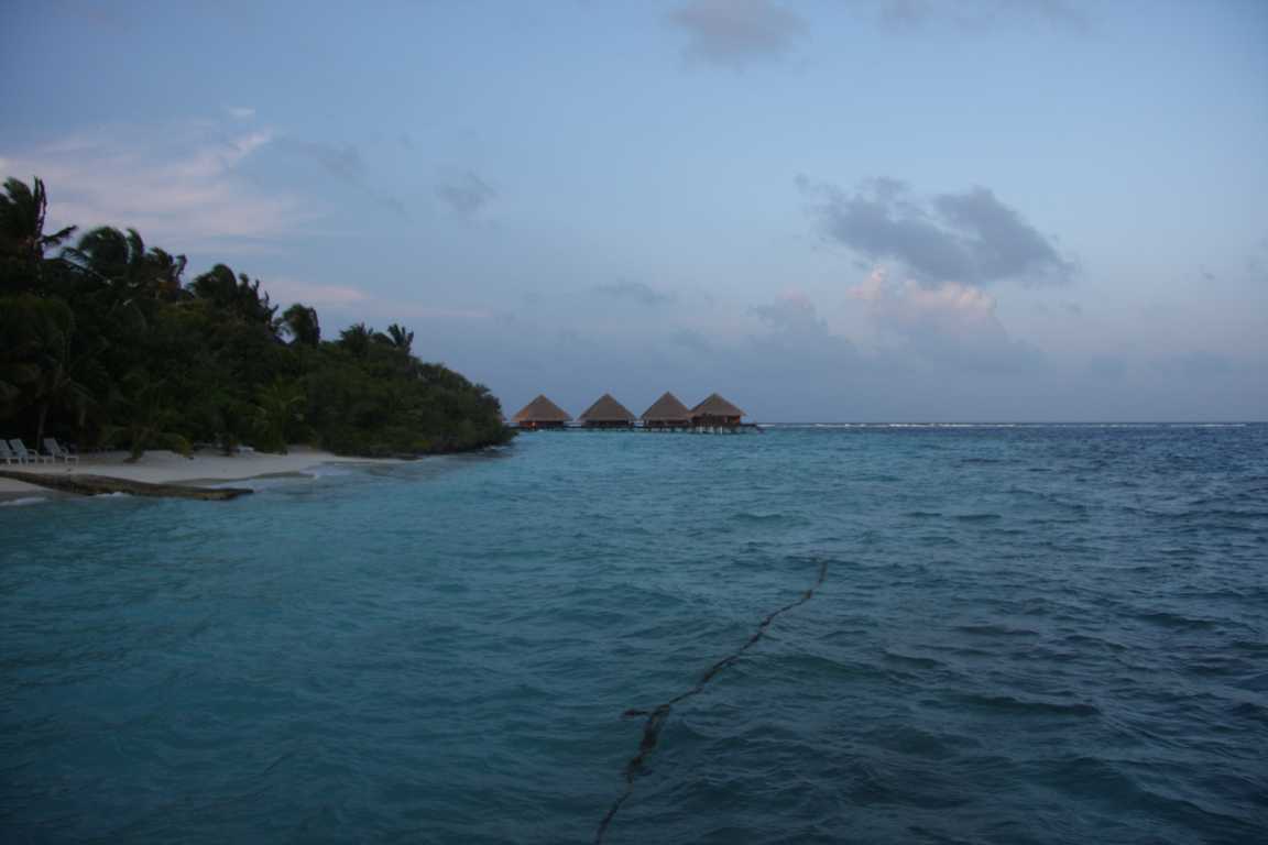 Wir sind dann Richtung der Wasserbungalows, haben uns aber entschieden auf die andere Seite zu schwimmen bzw. im Wasser zu gehen, da das Wasser doch extrem unruhig war.