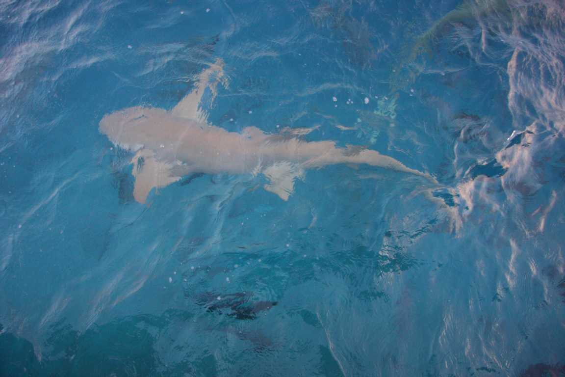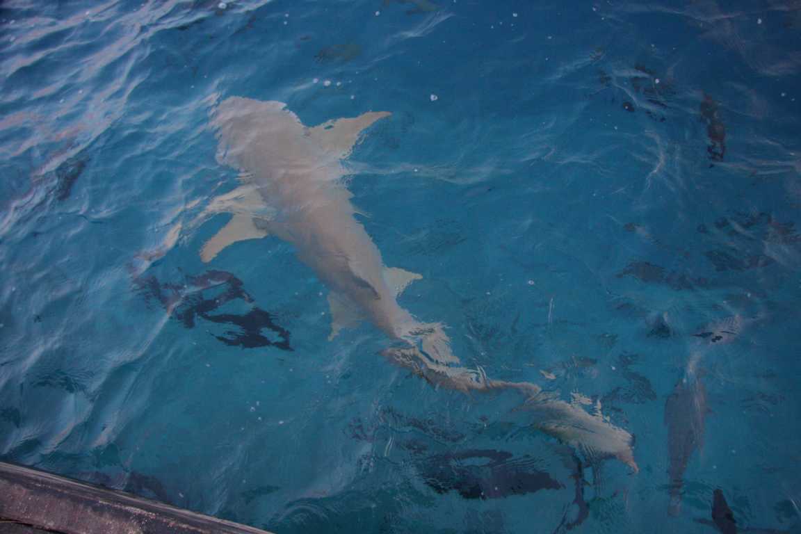 Dafür schlage ich vor, dass wir Montag um 6 Uhr aufstehen und zum Anlieger für die Versorger gehen, wo es um diese Zeit auch Haie zu sehen gibt. Wir sind eh alle so müde, dass gegen 22 Uhr das Licht ausgeht.