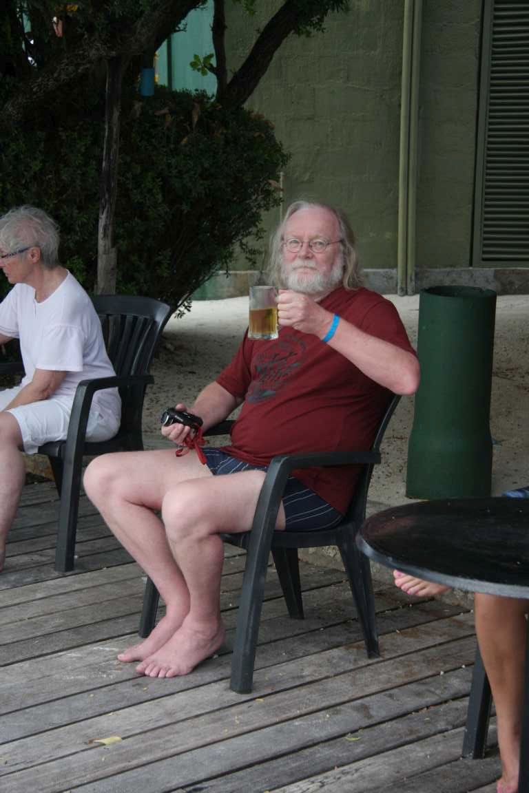 Er geht zurück um Badehose anzuziehen und die Unterwasserkamera zu holen.