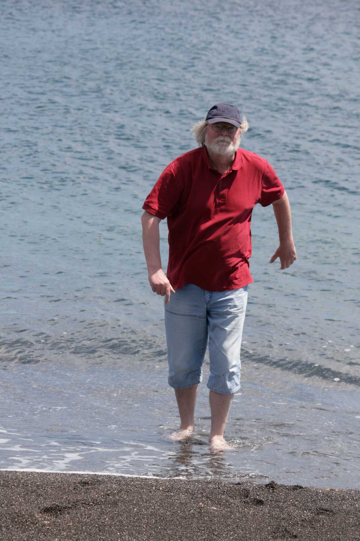 Da müssen die Füße schnell abgekühlt werden. Das Wasser hat eine Temperatur, dass ich vermutlich eine Runde geschwommen wäre, wenn ich vorher und nachher ein Sonnenbad hätte am Strand nehmen können. Ca. 18 Grad. Das geht heute nicht, denn wir haben ja noch einiges zu sehen -