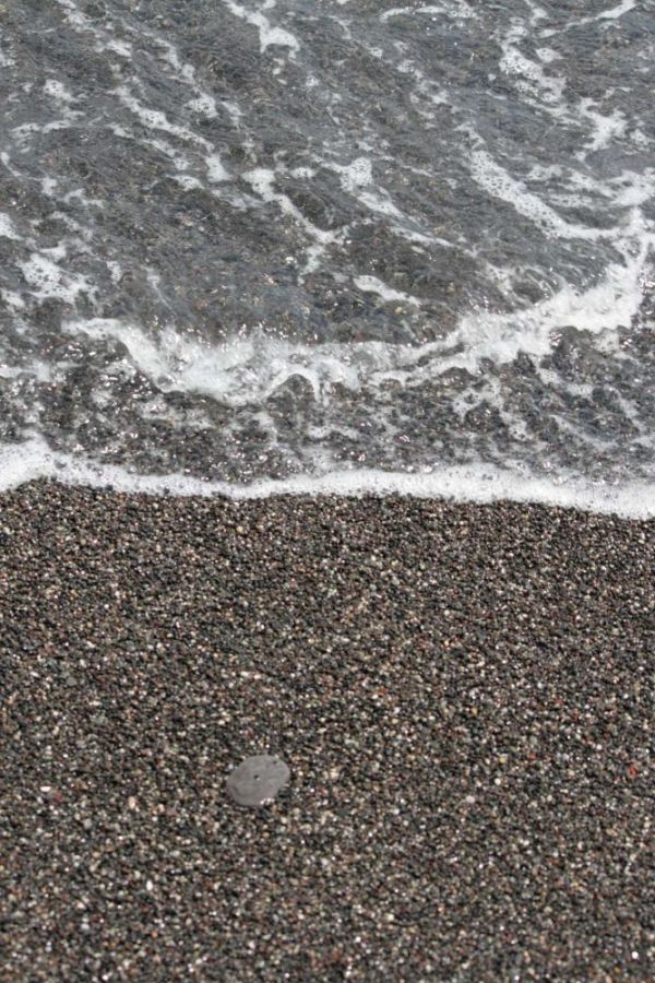 Hier liegt überall Bimstein... der schwarze Lavastrand ist so heiß, dass man kaum drüberlaufen kann.