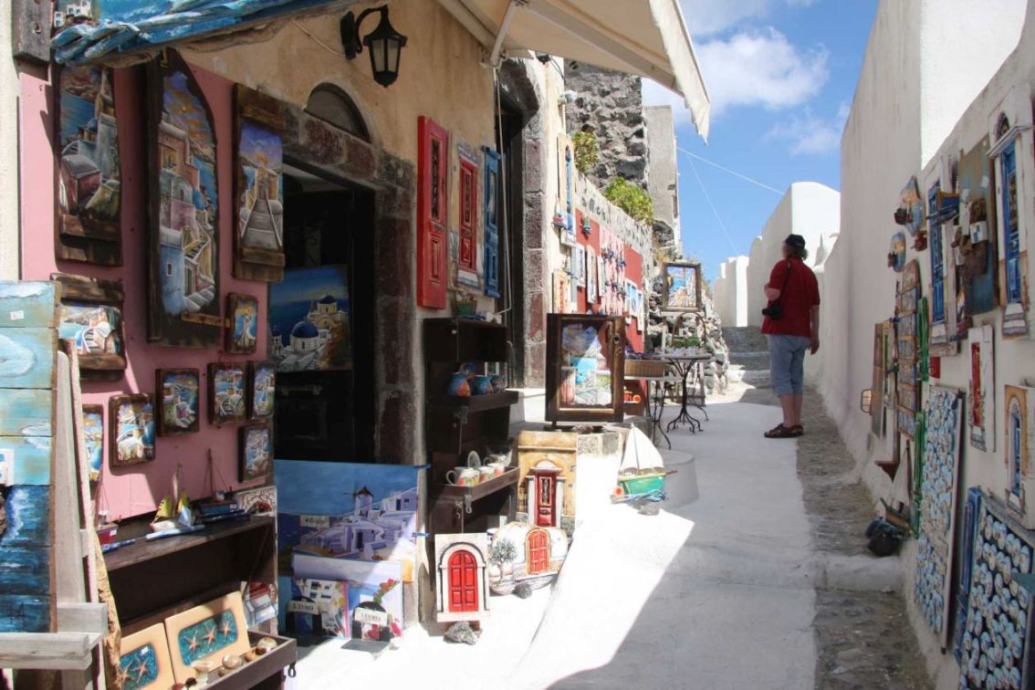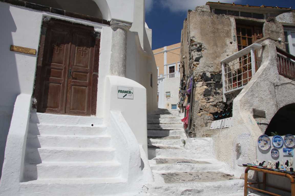 Hier oben befinden wir uns übrigens teilweise in einem Festungsbereich. Natürlich gibt es hier auch kleine Lädchen und ich suche weiter nach einem Becher aus Santorin - werde aber nicht fündig (nicht, dass es nicht genug gäbe, aber keiner der mir gefällt.)