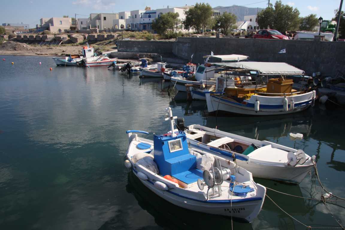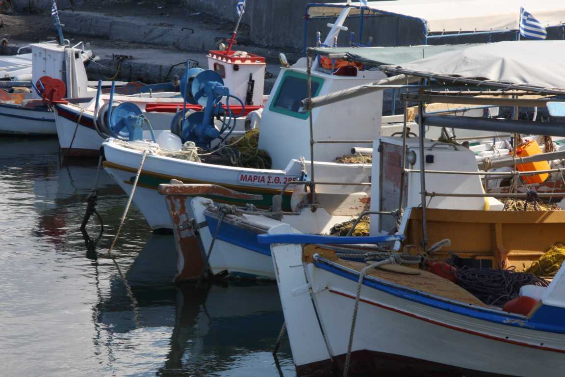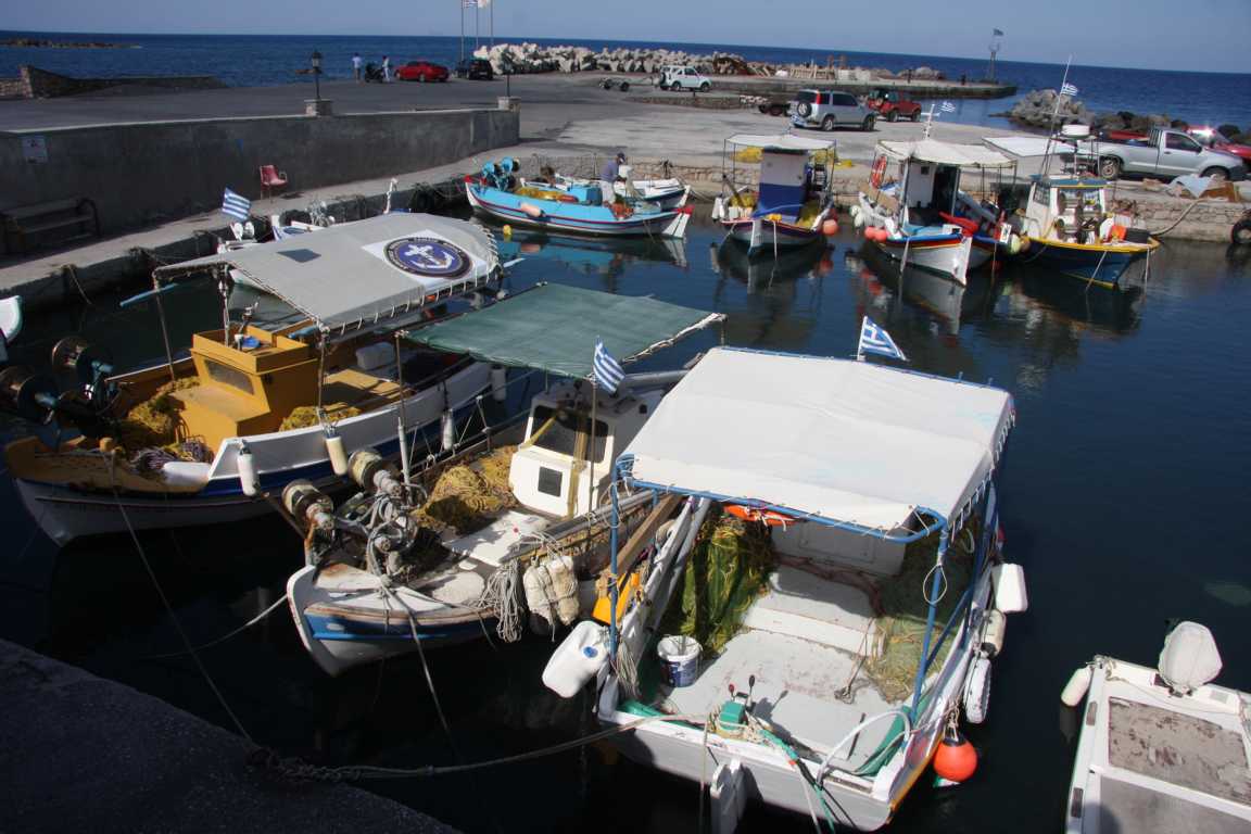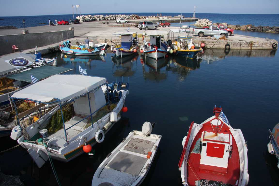 Jetzt möchte ich gerne noch an die Strände links neben dem Flughafen. Als Ort ist angegeben Monelithos. Im Reiseführer steht was davon, dass es dort schöne Strände geben soll. Na ja, diese Meinung teile ich nicht, aber wir finden einen kleinen niedlichen Fischerboothafen