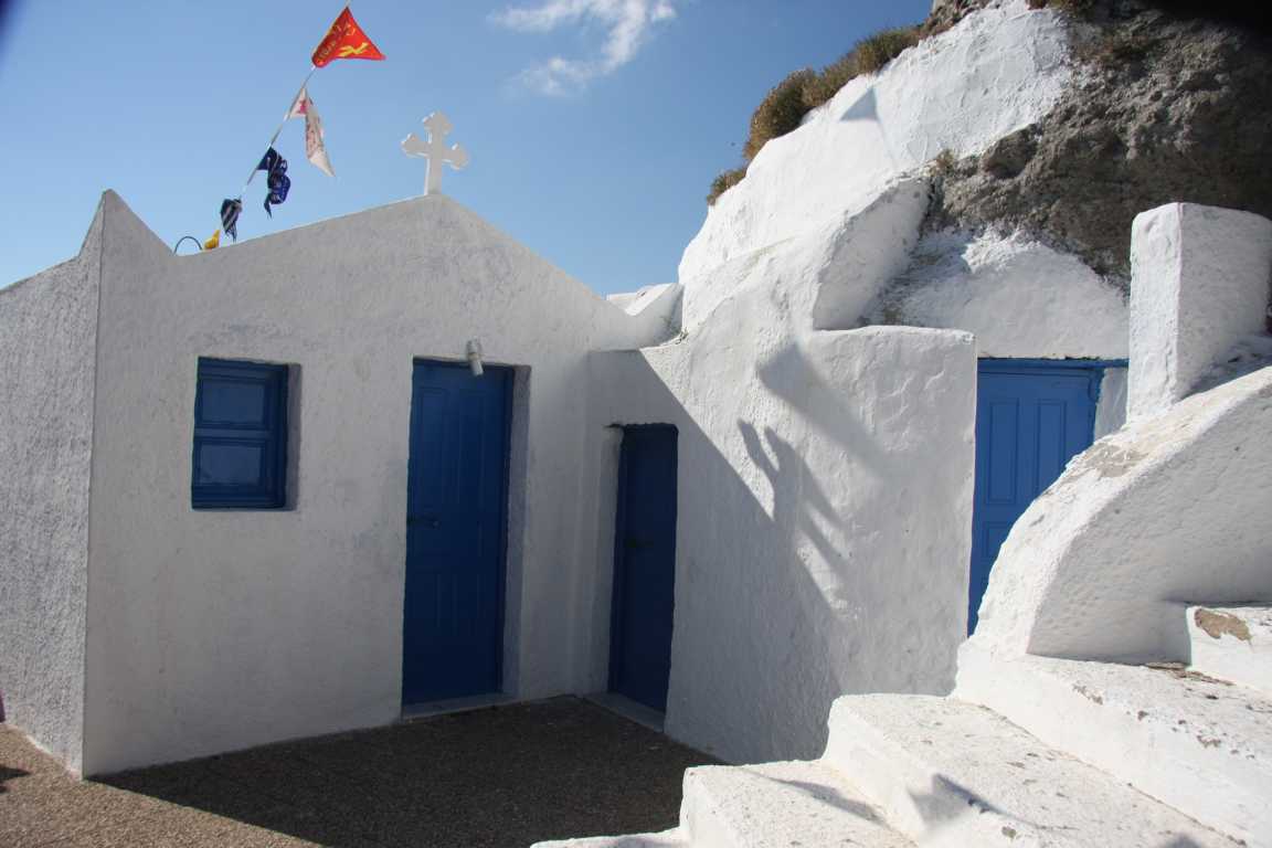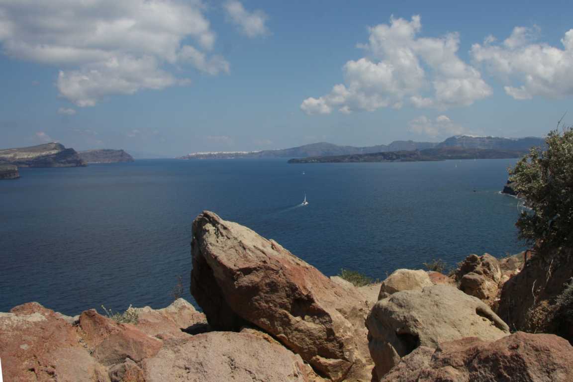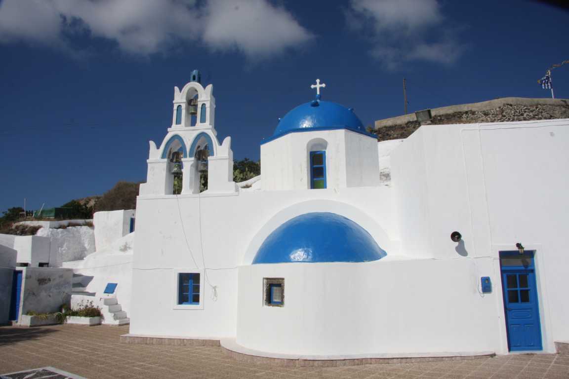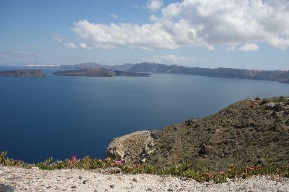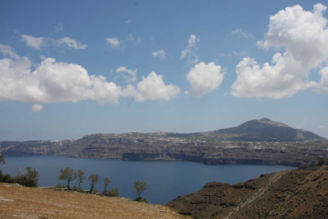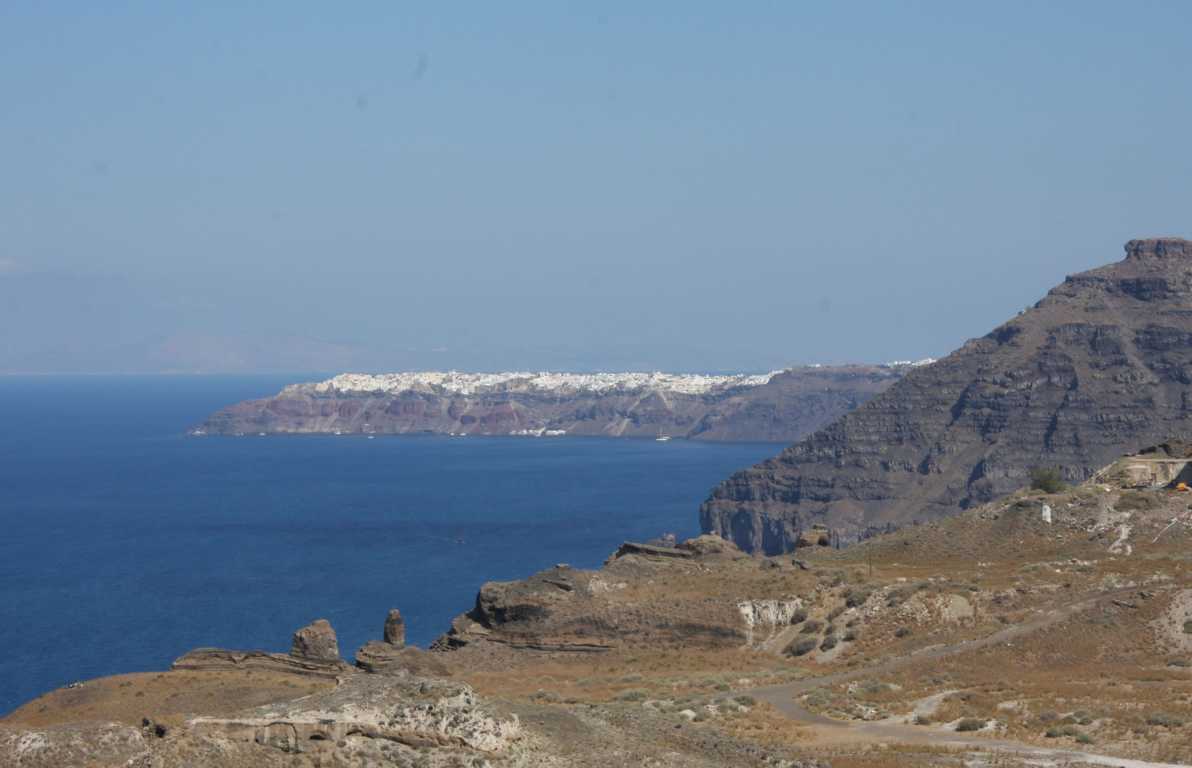 Wir fahren auf dieser Seite weiter und umgehen so Thira, wo es sehr eng ist für den Verkehr. Unterwegs einen kurzen Blick auf Oia. Unser nächstes Ziel ist Megalochori