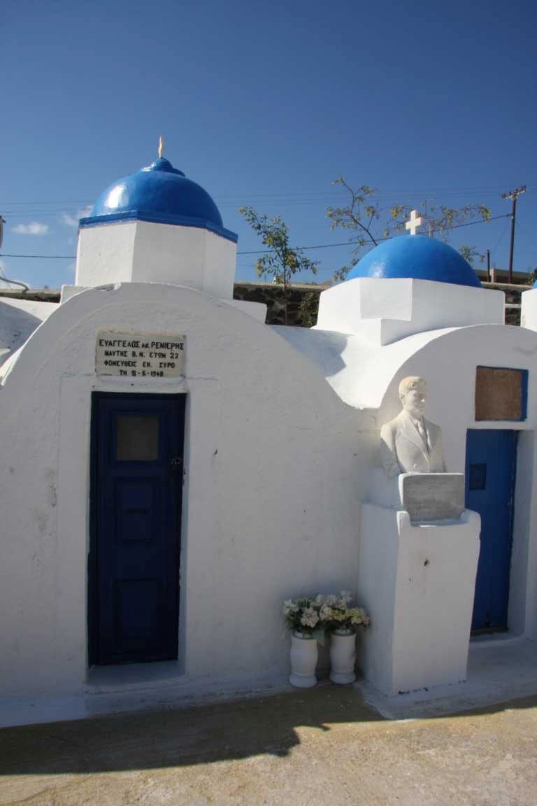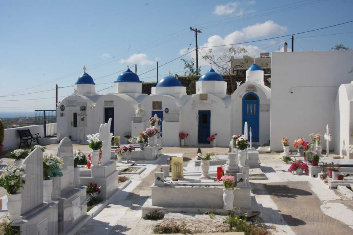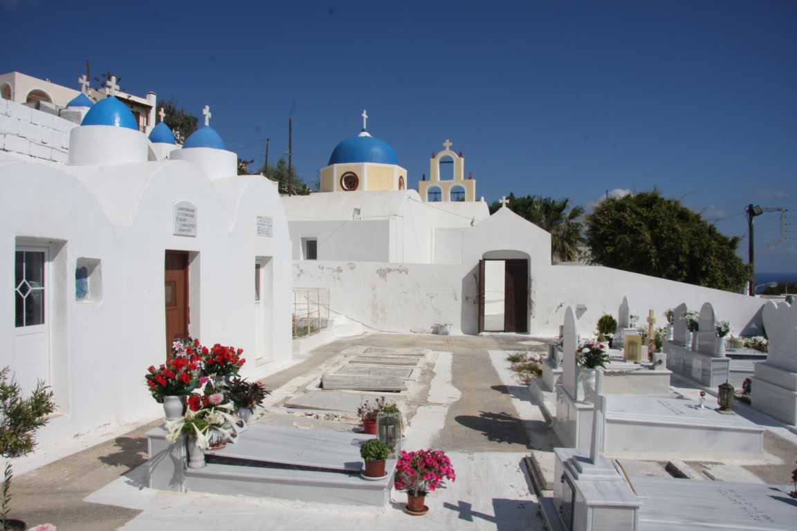 Außerdem wird ein Friedhof beschrieben, der sehenswert sei, da er blauweiße Grabkapellen aufweise. Gleich bei der höher gelegenen Kirche.