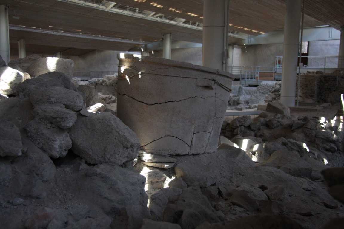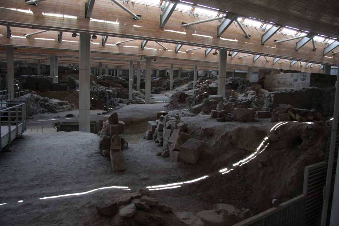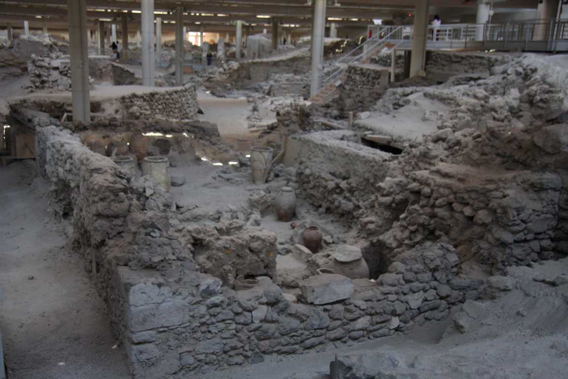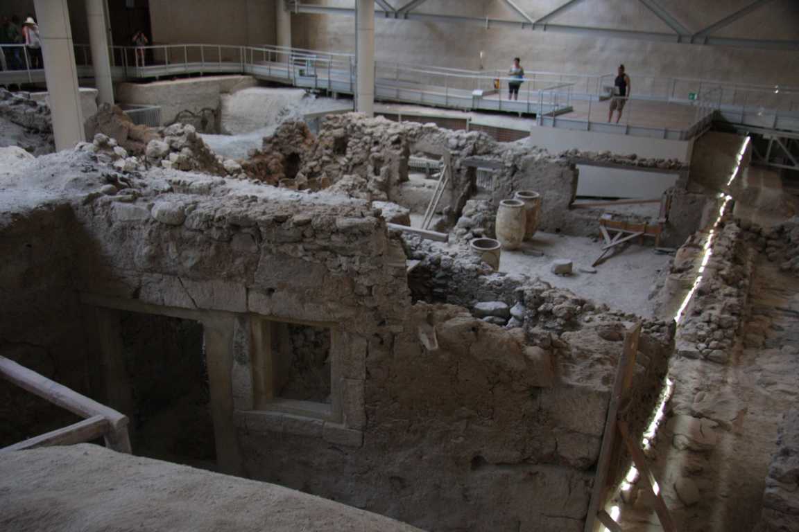 Unser nächstes Ziel ist Akrotiri. Nun wird etwas für die Bildung getan. Ca. 1625 vor Chr. hat ein mächtiger Vulkanausbruch die Stadt unter Asche gelegt. Seit 1967 wird hier ausgegraben.