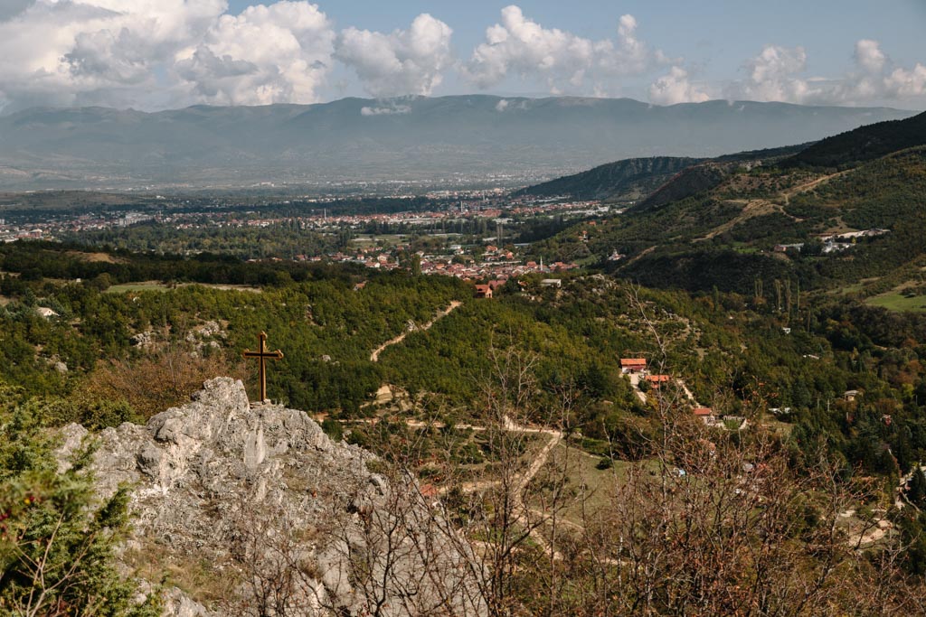 Der Weg zum Kloster Sveti Nedela trug die Bezeichnung "moderat", also sollte das unsere Wanderroute werden. Er beginnt im anliegenden Dorf Dolna Matka am Uspenie na Presveta Bogorodica Kloster. Es ging auch ganz moderat los. Nach den ersten Höhenmetern hatten wir nach 30 min einen schönen Ausblick über Tal und Canyon.