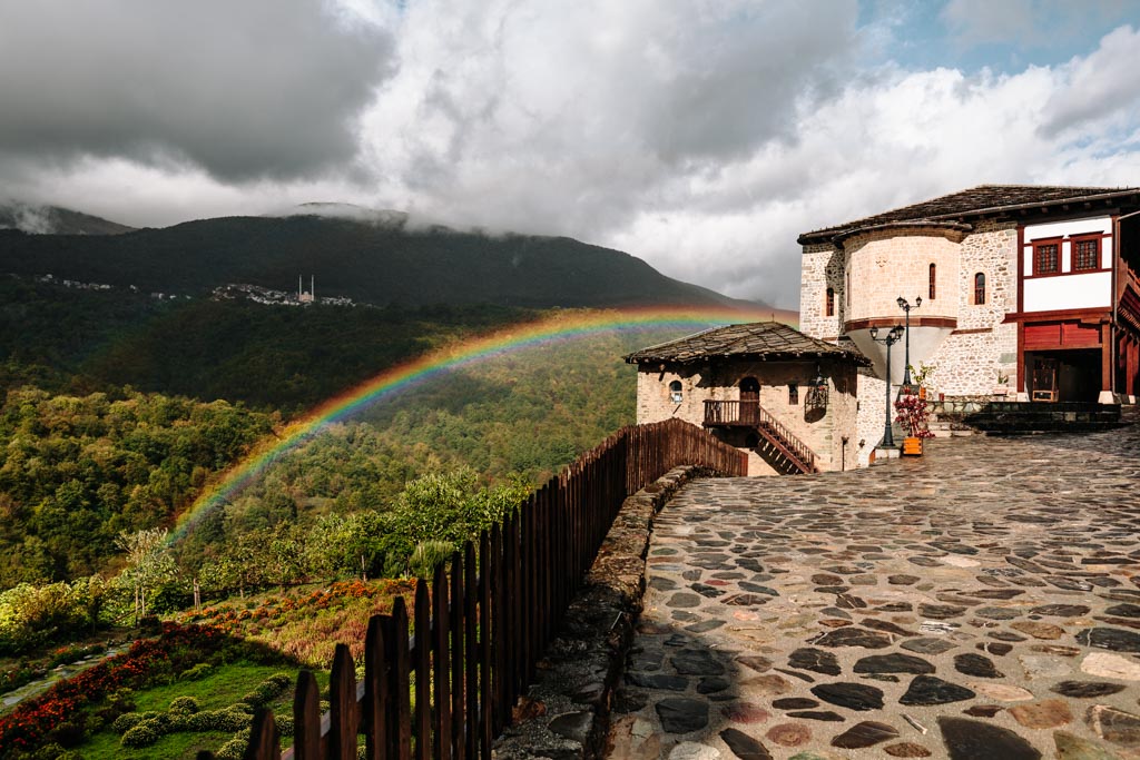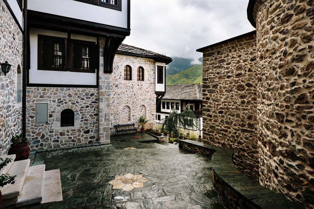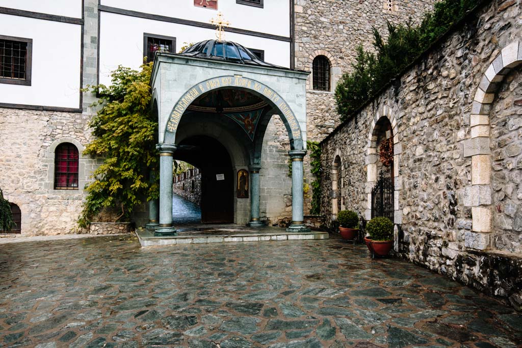 Der Schotterweg hatte allerdings einen kleinen Vorteil. Es gab einige Besucher am Kloster Sveti Spas. Als zwei ältere Herren zurück zu ihrem Fahrzeug gingen, fragte ich ganz berherzt, ob sie mich in's Dorf zurück mitnehmen. Das machten die beiden Gentlemen doch gerne und so mußte ich nicht den ganzen Weg wieder zu Fuß bewältigen. Das fand ich sehr nett.