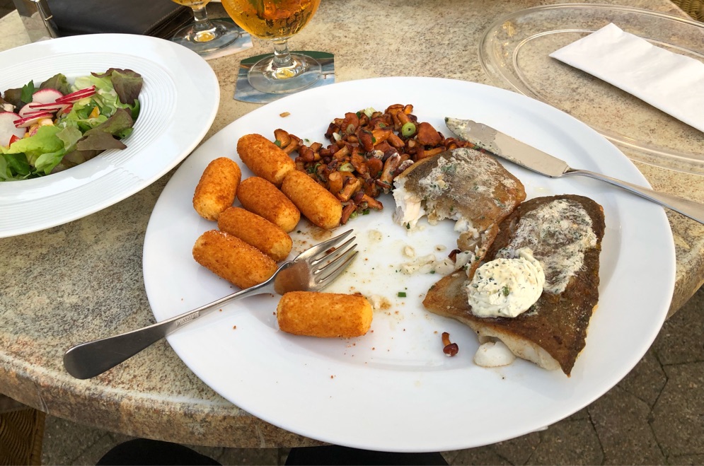 Gerade noch rechtzeitig dran gedacht. Das übliche Futterbild. Letzte Woche in Ulm gab es schon lecker Pfifferlinge, eben noch mal mit lecker Dorsch dazu.