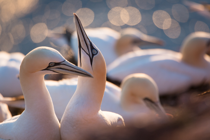 Dann ging es an's Kuscheln. Baßtölpel leben ebenfalls sehr eng aufeinander. Wie in einer Kommune ging es da zu. Ich taufte die beiden Uschi O. und Rainer L.