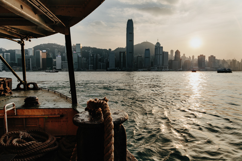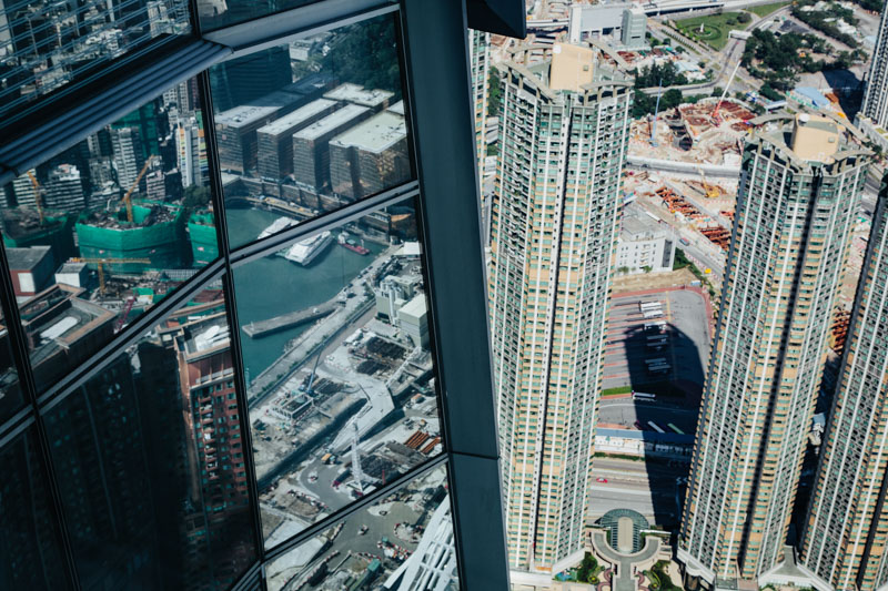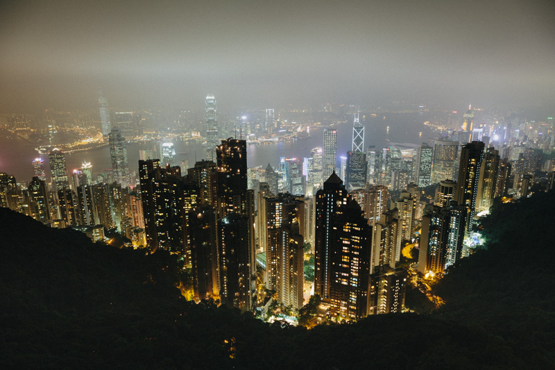 Es gibt 2 Warteschlangen. An einer Kasse kann man mit Yuan bezahlen, die andere nimmt Hongkong Dollar. Man sollte also tunlichst drauf achten daß man sich hier richtig einreiht. Bis zum frühen Nachmittag waren alle Züge ausgebucht. Also setzten wir uns in ein Cafe und bummelten die zeit mit Getränken und Internet ab. Die Fahrt dauerte ca. 2 Stunden und so kamen wir am späten Nachmittag in Hongkong an. Suchten unds eine günstige Bleibe in den Chungking Mansions und starteten anschließend zu einer kleinen Stadtrundfahrt mit Ziel am Peak.