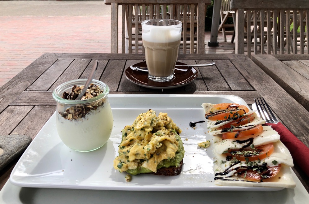 Immer nur selbstbelegte Brötchen zum Frühstück wird auch schnell langweilig. Also hat sich die kiki eben was gegönnt. War sehr lecker. Unter dem Rührei befindet sich noch Avocadocreme.
