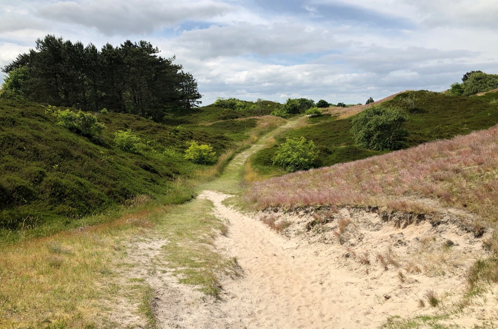 Zurück in Richtung Dorf darf man auf gekennzeichneten Trampelpfaden in der Dünenlandschaft stöbern. Für morgen ist Regen angekündigt, da wäre mir das wahrscheinlich zu modderig. Wenn zur Zeit eines nervt, dann sind es die Mücken. Auch ein Grund die Gegend morgen zu meiden.