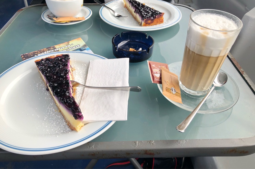 Das Kuchenbild ist übrigens auch am Friedhof entstanden. Ein kleines Café öffnete gerade für Kundschaft. Also gab es erst einmal 2. Frühstück.