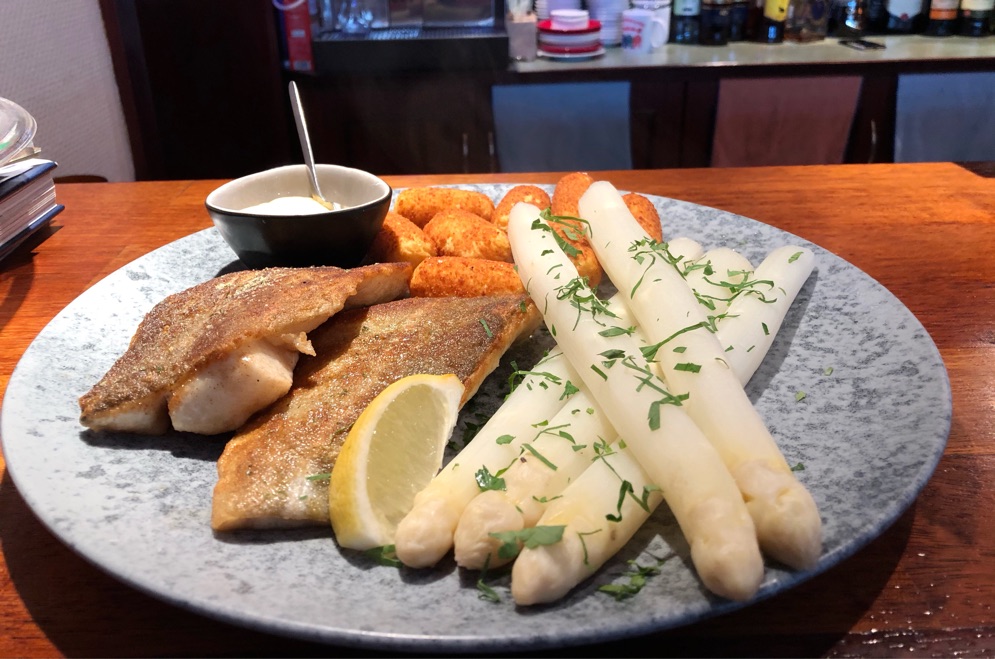 Eben gab es dann noch einmal Fisch mit Spargel. Mein Favorit im Restaurant.