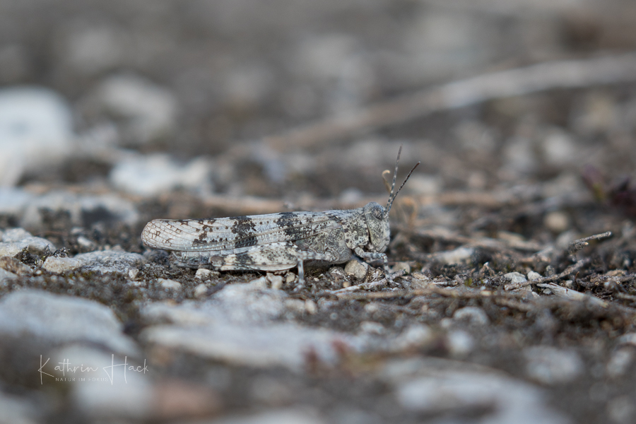 Hier fand ich auch ein auf der Roten Liste stehendes Krabbeltierchen - die Blauflüglige Ödlandschrecke. Da musste man wirklich nicht nur zweimal hinschauen, um die gute Tarnung zu entlarven