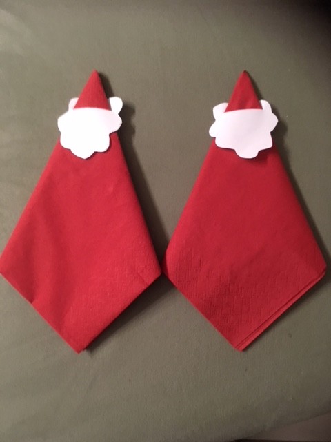 Für den Kindertisch habe ich eben noch schnell Nikolausservietten gefaltet.