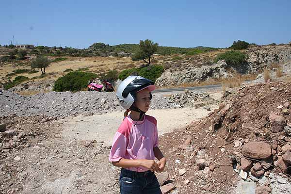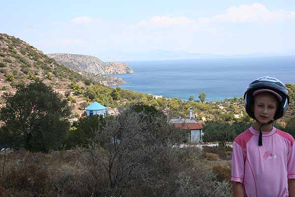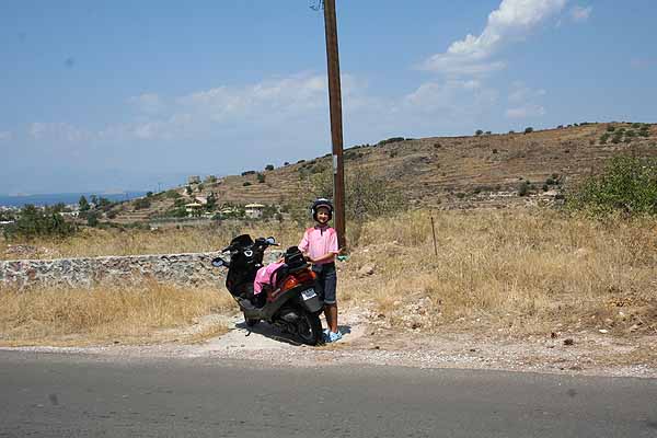 Heute Morgen weckte Oma mich um halb zehn und wir frühstückten ersteinmal gemütlich bei Panos. Danach packten wir wir unsre Sieben Sachen zusammen und holten unseren Roller ab.