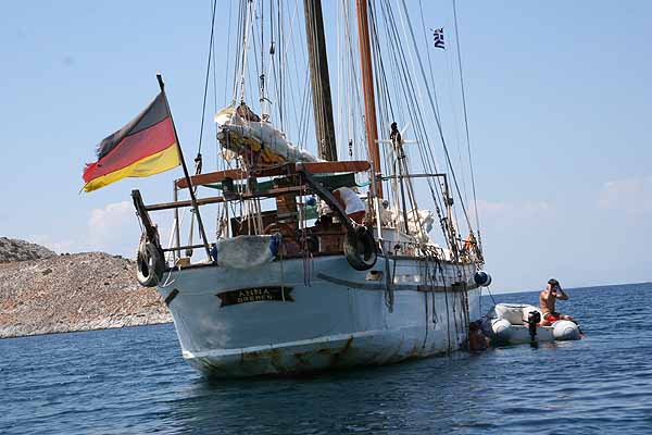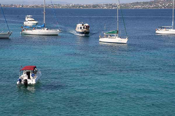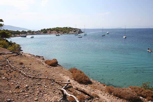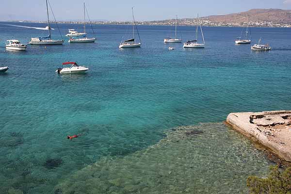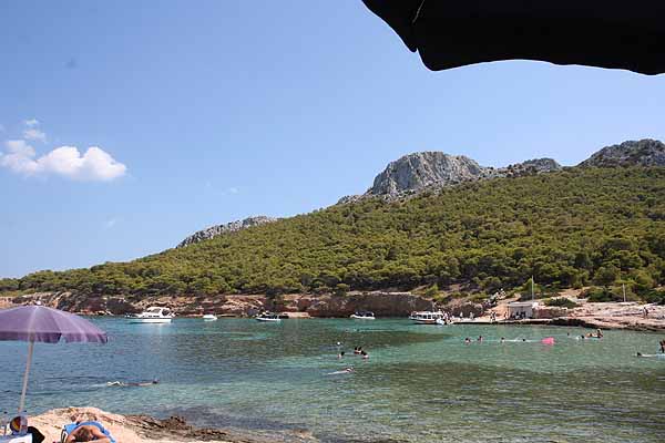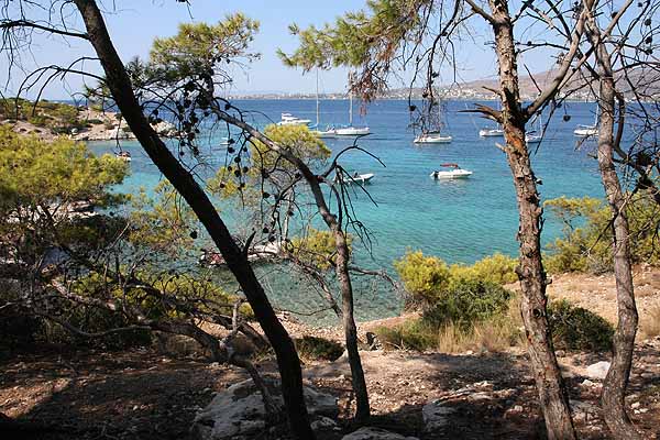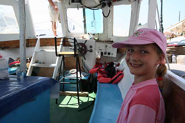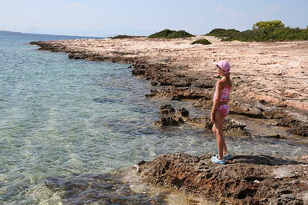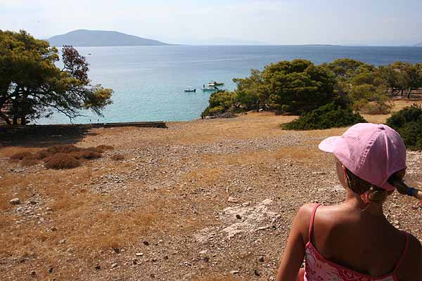 In Perdika angekommen, holte Oma sich ein Eis,(von dem ich die Schokolade essen musste) und danach fuhren wir mit dem Boot zum wiederholten Mal nach Moni, da diese Insel einfach wunderbar ist.
