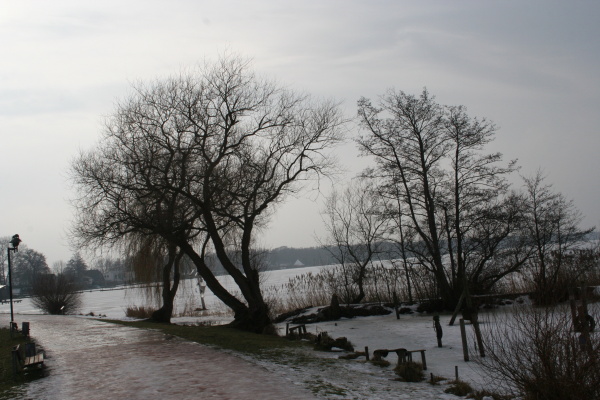 Bald darauf kamen wir beim Steinhuder Meer an. Es war fast komplett zugefroren, kein Wunder, eine Freundin hatte mir erzählt, man hätte hier vor kurzem auf dem Eis laufen können.Von 3 Seiten wären die Leute auf den Wilhelmstein zugeströmt.
