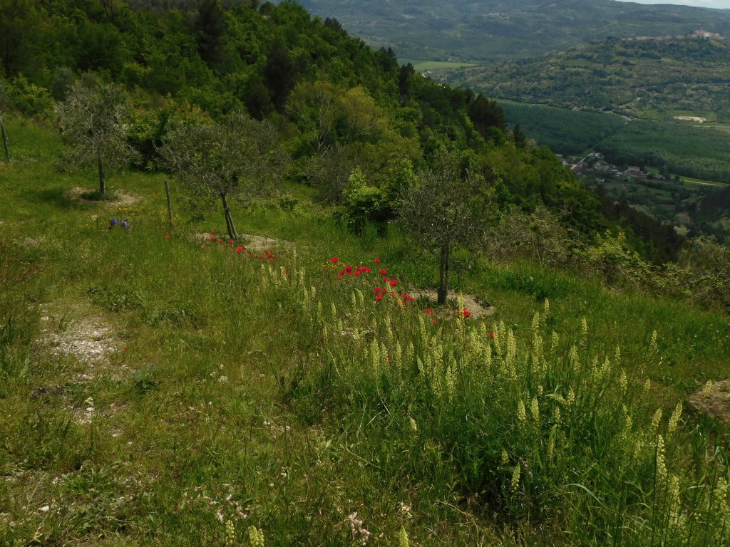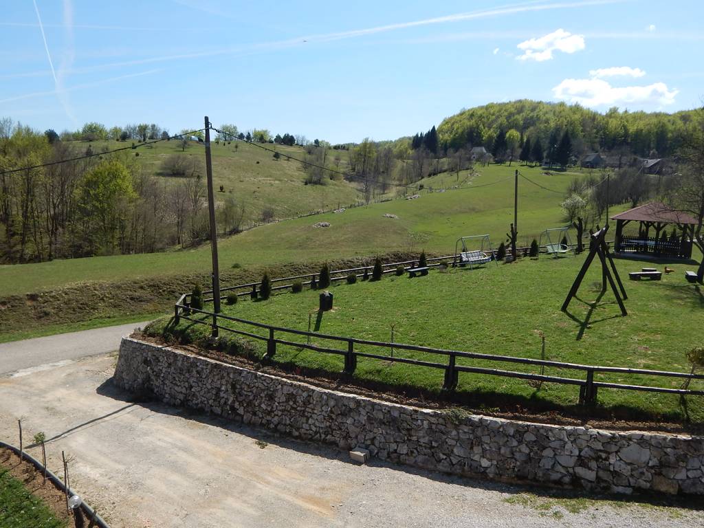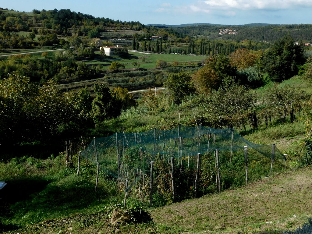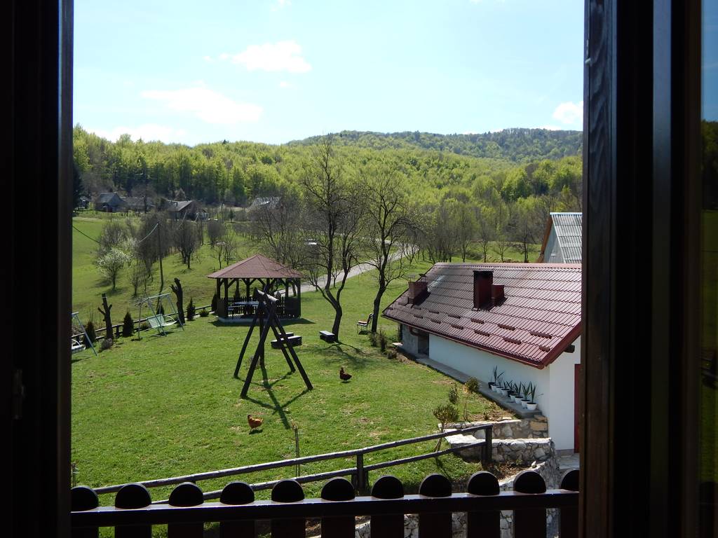Blick von unserem Zimmer in den Garten und dem Hof. Die Fam. Breza haben viele Hühner, die überall herumlaufen dürfen - also wirklich glückliche Hühner. Eine große Schafherde und einen Hund gehörten auch zum Haus. Die Schafe wurden morgens aus ihrem Stall gelassen. Sie liefen und grasten den ganzen Tag irgendwo und gegen Nachmittag kamen alle wieder freiwillig zurück.